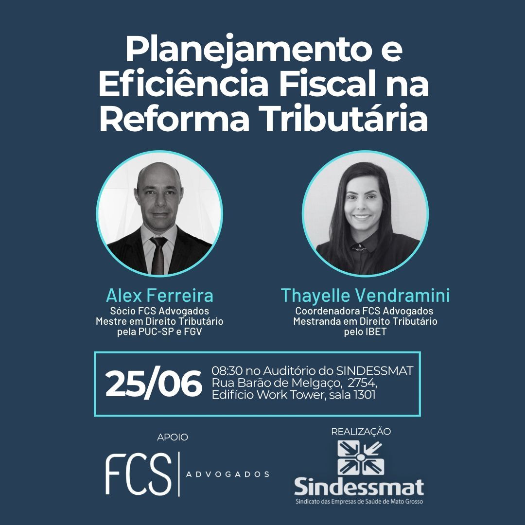 Planejamento e eficiência fiscal na reforma tributária será tema de palestra realizada pelo Sindessmat
